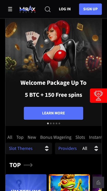 Mirax 拥有令人难忘、设计精美的赌场标志;注册过程非常简单,整个平台针对所有可用设备进行了优化,因此无论您使用移动设备还是台式设备访问此在线赌场,都可以享受完美的赌博体验。