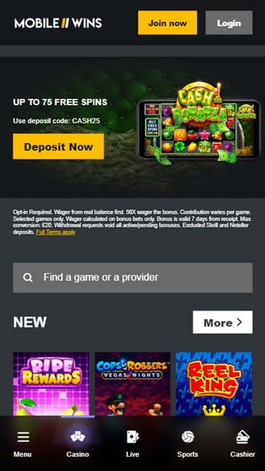 MobileWins Casino 是一个在线博彩网站,由 ProgressPlay 于 2014 年创立,为受监管司法管辖区的玩家提供游戏和服务。该赌场拥有丰富的游戏库、简洁的网站界面以及合理的赔付时间,所有这些都让 MobileWins Casino 值得一试。