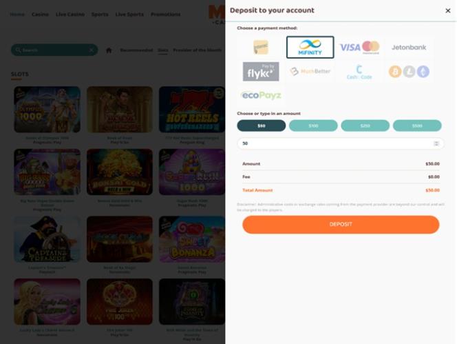 注册流程简洁明了。平台背景为白色,没有太多视觉干扰。所有赌场板块都清晰可见,易于访问。游戏绝对是玩家关注的焦点。毕竟,我们来这里就是为了玩游戏,不是吗?