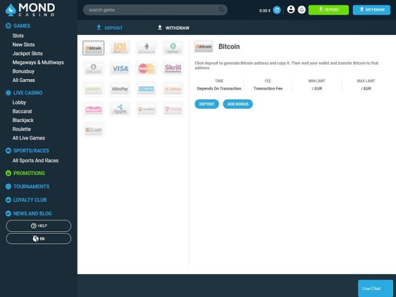在 MondCasino,玩家可以使用加密货币进行存款和取款,因此提供多种加密货币支付选项。此外,还提供所有其他标准银行业务方式,例如各种电子钱包、各种支付卡以及直接银行转账。