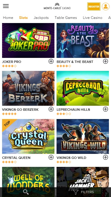 蒙特卡洛赌场由 Amaya, Microgaming, Net Entertainment, Barcrest, Big Time Gaming, Evolution Gaming, Genesis Gaming, lightningboxgames, Quickspin, Rabcat, Thunderkick, Yggdrasil, Booming Games, IGT, Games Global, 2by2 Gaming, Bally Technologies, bluberi, Leander Games, NextGen, Push Gaming and WMS提供支持,该平台通过其网页平台为玩家提供种类繁多的游戏。玩家可以直接通过网页浏览器访问蒙特卡洛赌场,也可以通过支持智能手机和平板电脑的移动网站访问。