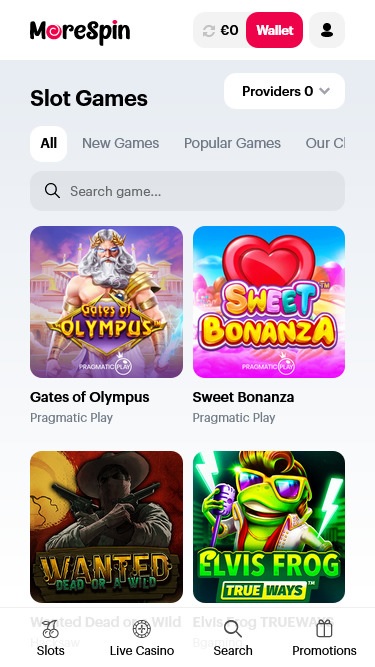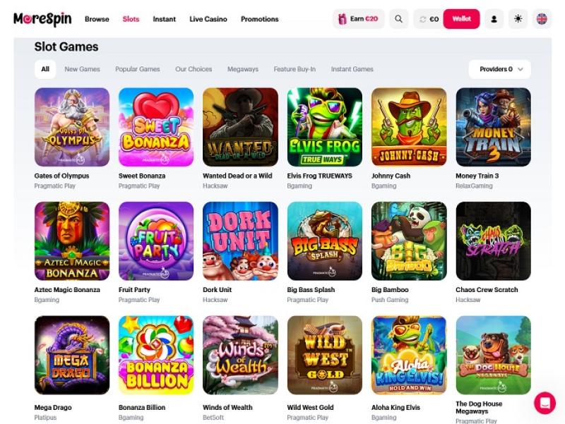 老虎机爱好者将在 MoreSpin 赌场玩得非常开心,因为这里有无数优质的在线老虎机游戏可供探索,例如 Wanted Dead or a Wild、Gates of Olympus、Sweet Bonanza、Xpander、Big Bass Splash、Cleocatra、Tropical Tiki、Mental等等。