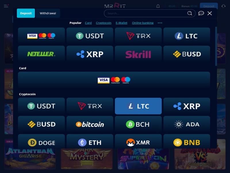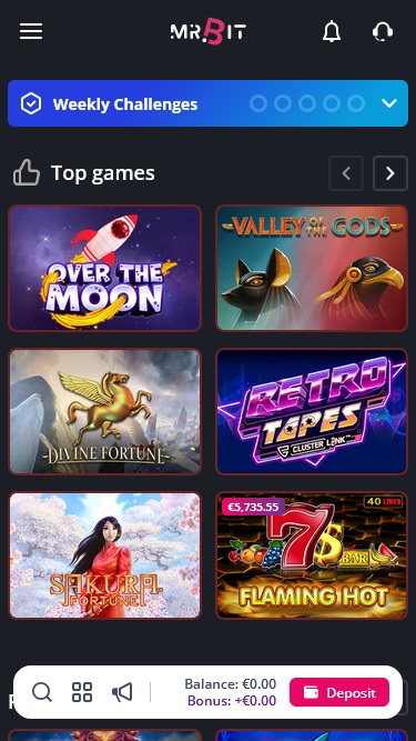 Mr Bit 赌场由 Microgaming, Net Entertainment, Playtech, 1x2gaming, Amatic Industries, Big Time Gaming, ELK Studios, Evolution Gaming, Ezugi, Genesis Gaming, Habanero Systems, iSoftBet, lightningboxgames, Oryx, Play'n GO, playson, Quickspin, Rabcat, Relax Gaming, Rival, Thunderkick, Yggdrasil, Endorphina, Wazdan, Realistic Games, GameArt, Betgames, Booming Games, Stakelogic, Pragmatic Play, Nolimit City, Red Tiger Gaming, Booongo, Spinomenal, Red Rake Gaming, Skillzzgaming, Fugaso, Belatra Games, Fantasma Games, SYNOT Games, Kalamba, Revolver Gaming, Skywind, Triple Edge Studios, Northern Lights Gaming, Fazi, Evoplay, Stormcraft Studios, Switch Studios, SA Gaming, Electric Elephant Games, Pocket Games Soft, All41 Studios, Gluck Games, August Gaming, Mascot Gaming, Gameburger Studios, Pulse 8 Studios, Neon Valley Studios, Golden Rock Studios, Swintt, TrueLab Games, Shuffle Master, SpinPlay Games, SmartSoft Gaming, Real Dealer Studios, GONG Gaming, Blue Guru Games, On Air Entertainment, Buck Stakes Entertainment, Games Global, Amusnet Interactive, 2by2 Gaming, Ainsworth, Bally Technologies, bluberi, Blueprint Gaming, CT Interactive, Igrosoft, Merkur Gaming, NextGen, NYX Interactive, Push Gaming, Tom Horn Gaming, WMS, SG Interactive, Gamomat, Scientific Games, Side City Studios, Reel Time Gaming, Authentic Gaming, BF Games, betiXon, Bally Wulff, Iron Dog Studio, Old Skool Studios, Foxium, Betdigital, Just For The Win, Storm Gaming Technology, PearFiction Studios, Apollo Games, Slingshot Studios, Golden Hero, Fortune Factory Studios, STHLM Gaming, RubyPlay, 4ThePlayer, Gamevy, Crazy Tooth Studio, NetGaming, ReelPlay, Zonelock, Alchemy Gaming, Black Pudding Games, Snowborn Games, Boomerang Studios, Hacksaw Gaming, Max Win Gaming, Gold Coin Studios, Bang Bang Games, Gamzix, Half Pixel Studios, Arcadem, Slotmill, SilverBack Gaming, Aurum Signature Studios, Area Vegas, Leap Gaming, 3 Oaks Gaming, Wishbone Games, Spribe, Print Studios, Gaming Corps, HammerTime Games, Four Leaf Gaming, INO Games, Nailed It! Games, Live 5, Atomic Slot Lab, Neko Games, Oros Gaming, Givme Games, Indigo Magic and Light & Wonder提供支持,赌场游戏可通过网页平台使用,您可以使用互联网浏览器访问。该网站开发完善,易于浏览。此外,它还内置移动端支持,方便您在手机或平板电脑上畅玩。Baccarat