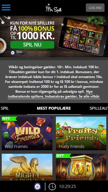 Mr Spil Casino 由 Microgaming, Net Entertainment, ELK Studios, Evolution Gaming, iSoftBet, lightningboxgames, Play'n GO, Rabcat, Thunderkick, Pragmatic Play, SYNOT Games, Triple Edge Studios, Stormcraft Studios, Switch Studios, Gameburger Studios, Pulse 8 Studios, Games Global, Wizard Games, 2by2 Gaming, Blueprint Gaming, NeoGames, NextGen, Pariplay, SG Interactive, Side City Studios, Foxium, Just For The Win, Fortune Factory Studios and High 5 Games提供支持,并通过基于网页的即时游戏平台进行游戏。目前不支持移动端游戏。