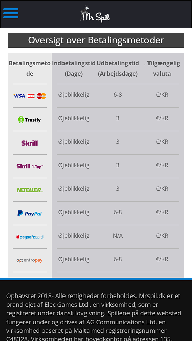 Mr Spil Casino 是一个专注于挪威博彩市场的在线博彩网站,由 LMA Gaming Ltd. 于 2012 年创立。该赌场以支付速度快而闻名,拥有大量游戏,是寻找新赌场的玩家的理想选择。