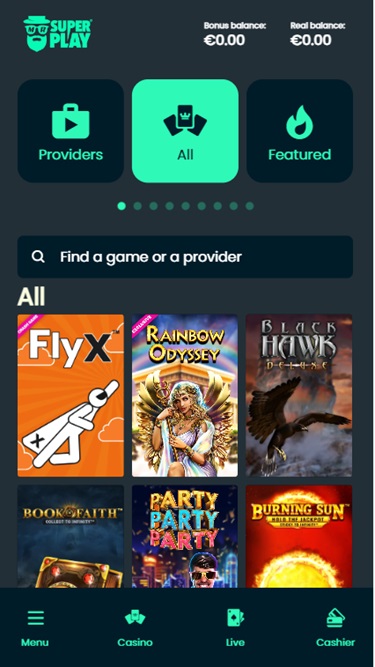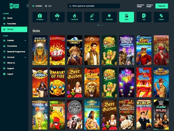 Mr SuperPlay 赌场由 Microgaming, Net Entertainment, Playtech, 1x2gaming, Barcrest, Big Time Gaming, ELK Studios, Evolution Gaming, EYECON, lightningboxgames, Novomatic, Play'n GO, Quickspin, Rabcat, Thunderkick, Wazdan, Pragmatic Play, Nolimit City, Red Tiger Gaming, Skillzzgaming, Fugaso, SYNOT Games, Skywind, Triple Edge Studios, Northern Lights Gaming, Stormcraft Studios, Switch Studios, All41 Studios, Gluck Games, Gameburger Studios, Pulse 8 Studios, Slot Factory, Neon Valley Studios, Shuffle Master, SpinPlay Games, Real Dealer Studios, GONG Gaming, On Air Entertainment, Buck Stakes Entertainment, Games Global, 2by2 Gaming, Ash Gaming, Blueprint Gaming, Greentube, NextGen, ProgressPlay, Tom Horn Gaming, WMS, Inspired Gaming, SG Interactive, CORE Gaming, Scientific Games, Reel Time Gaming, BF Games, Iron Dog Studio, Old Skool Studios, Foxium, Betdigital, Just For The Win, PearFiction Studios, Wild Streak Gaming, Slingshot Studios, Fortune Factory Studios, Gamevy, Crazy Tooth Studio, Groove Gaming, ReelPlay, Alchemy Gaming, Rarestone Gaming, Snowborn Games, Hacksaw Gaming, Max Win Gaming, Gold Coin Studios, Half Pixel Studios, Aurum Signature Studios, Lucksome Gaming, Area Vegas, Leap Gaming, Wishbone Games, Circular Arrow, HammerTime Games, INO Games, Nailed It! Games, Neko Games, Reel Kingdom, Oros Gaming and Light & Wonder提供支持,赌场游戏通过基于网页的即时游戏平台提供,可直接通过您的网络浏览器加载。赌场还支持移动端游戏,这意味着您可以在智能手机或平板电脑上玩游戏。