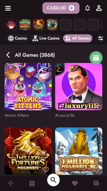 所有可用的赌场游戏都井井有条。以下是部分类别:奖金游戏、累积奖金、新手游戏、游戏系列、高波动性、赢或崩盘、经典老虎机、桌面游戏、视频扑克、虚拟体育等等。