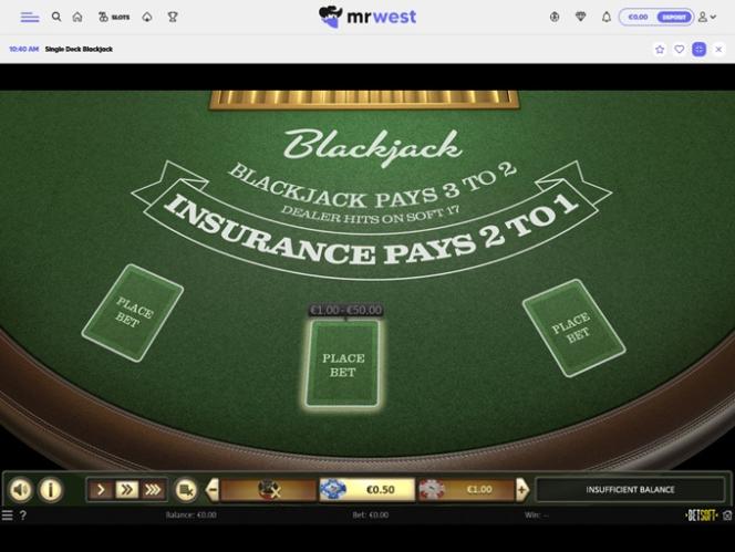 更多资讯关于 MrWest Casino's 1x2gaming Blackjack