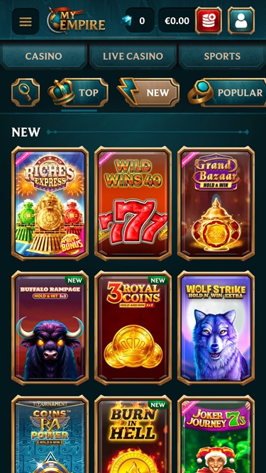 与其他注重会员和访客体验的现代在线赌场一样,MyEmpire 也提供完美优化的界面,让移动端游戏体验更加出色,正如桌面玩家所期待的那样。无论您使用什么设备,都能畅玩赌场精彩的游戏库!