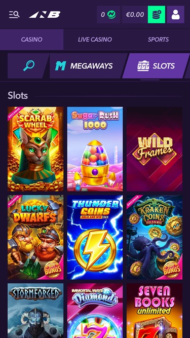 游戏库按以下类别进行组织:独家游戏、奖励购买游戏、真人游戏、Megaways 游戏、老虎机游戏、桌面游戏等。