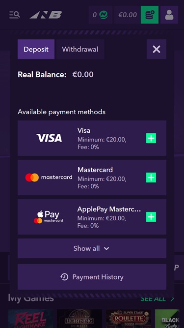 如果您访问支付页面,可以选择您的货币和所在国家/地区,并查看您所在地区的存款和取款选项,以及最低和最高限额。这非常实用,因为在线博彩的支付选项因国家/地区而异,支付页面可以帮助您了解您偏好的支付方式是否适用。
