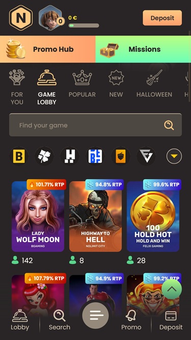 游戏大厅按类别组织,浏览起来非常方便。您可以按游戏类型或工作室搜索游戏,还可以使用一些特定功能,例如掉落奖励和购买奖励。