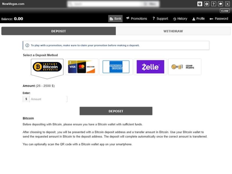 下面您将看到 NewVegas 的各种银行业务选项,包括赌场的存款和取款选择。