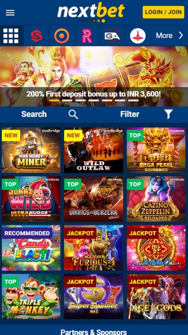 Nextbet 以白色背景、蓝色叠加和黄色色调的组合,营造出一个清晰易见的环境,既赏心悦目,又易于操作。设计师将用户体验和易用性放在首位,这一点值得称赞。