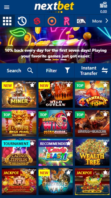 例如,Nextbet Casino 的软件供应商选择相对丰富,其网站提供了 60 家不同的工作室。这样的选择当然不是我们见过的最多的,但足以满足即使是最挑剔的品味和需求。