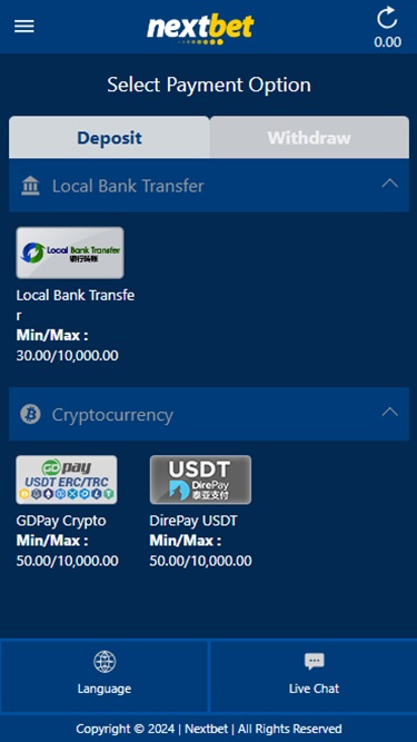 Banking银⾏业务选项 的 Nextbet Casino