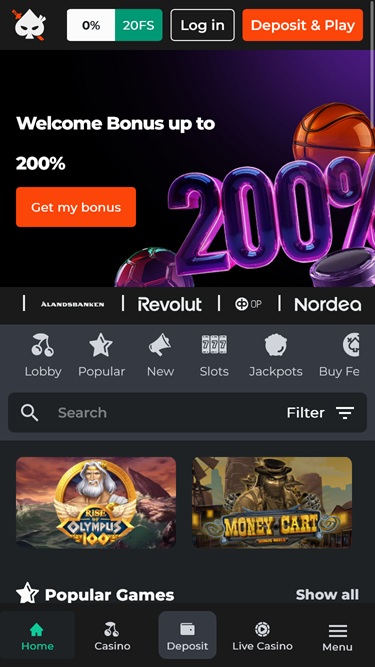 作为 Trustly 授权的企业之一,该平台为玩家提供无需注册的 Pay & Play 服务。为了提高效率并提供真正卓越的玩家体验,运营商提供即时提现和全天候客户支持,以及精选的热门赌场游戏。