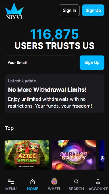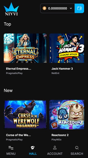 Niyvi Casino 提供全面优化的游戏,无论在手机上还是在电脑上都能畅玩,无论您是使用智能手机、平板电脑,还是在家中的个人电脑,都能获得高品质的体验。凭借便捷的导航、惊艳的视觉效果和绝佳的氛围,这家赌场必将成为众多玩家的最爱。我们迫不及待地想探索它的全部精彩!