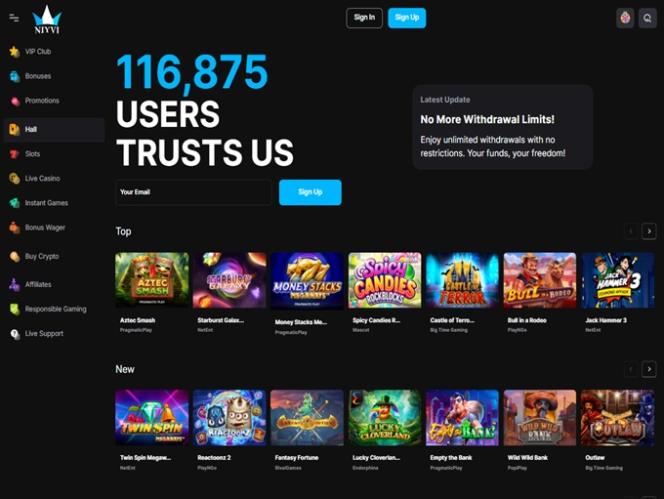 Niyvi Casino 是一家在线赌场,由一家在哥斯达黎加注册成立的公司运营,并由哥斯达黎加博彩委员会授权和监管。该品牌主要面向来自美国、加拿大、波兰、德国、法国和葡萄牙的玩家。