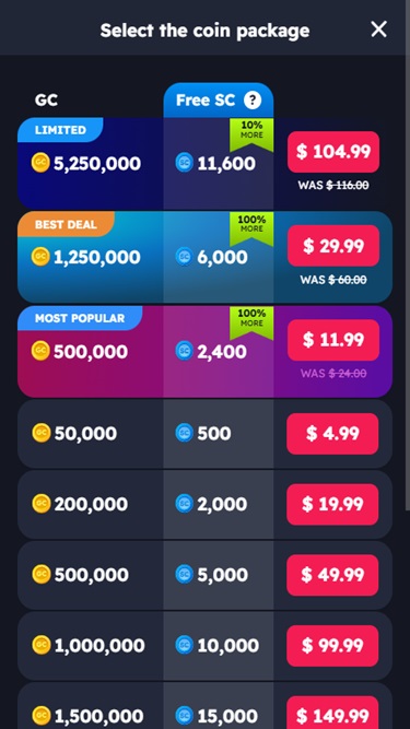 遗憾的是,玩家无法玩到二十一点、扑克、轮盘和百家乐等经典桌面游戏,因此那些寻求更传统体验的玩家可能会有些失望。NoLimitCoins 也不提供任何真人荷官游戏。综合考虑,游戏种类尚可,尤其考虑到这是一家社交型赌场。随着时间的推移和品牌的不断发展,我们预计游戏种类将更加丰富多样。