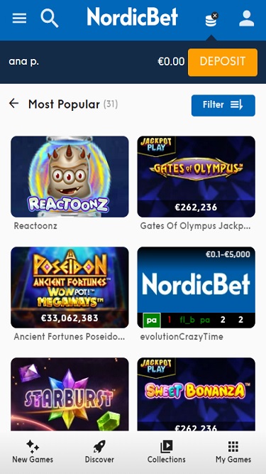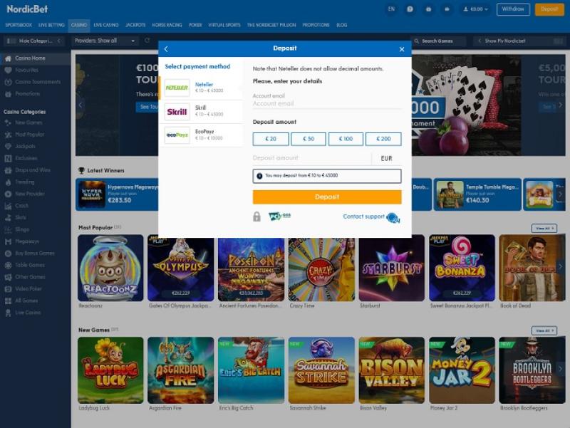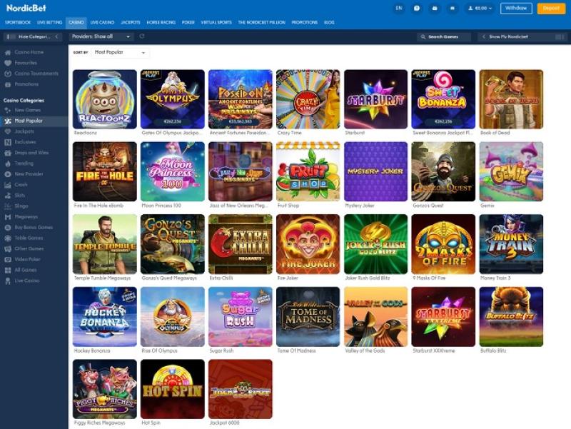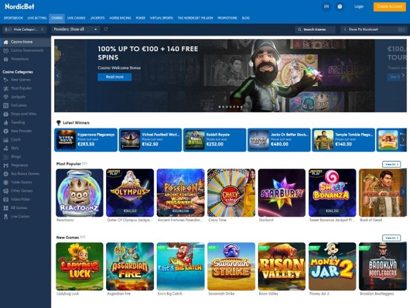 除了标准的赌场游戏外,NordicBet Casino 还为客户提供体育博彩、扑克和真人荷官游戏。