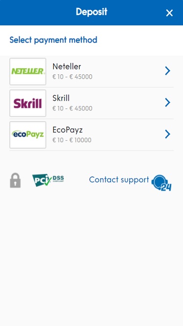 NordicBet 的银行选项并不多,但赌场处理玩家提款的速度非常快,一些款项只需几个小时即可到账。存款和取款可以通过银行电汇、万事达卡、Visa、Neteller、Skrill 和 WebMoney 进行。存款方式还包括 ClickandBuy 和 EntroPay。