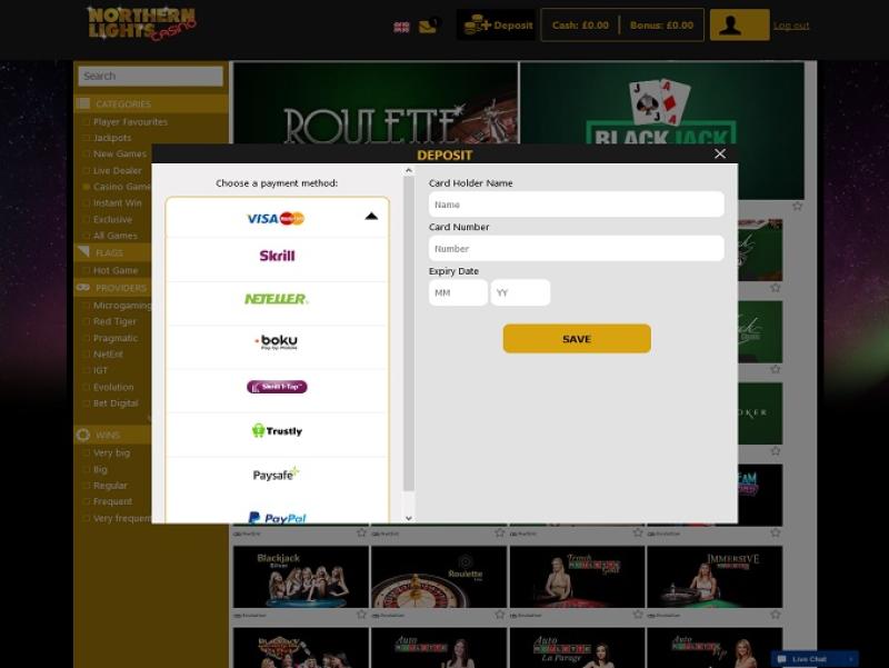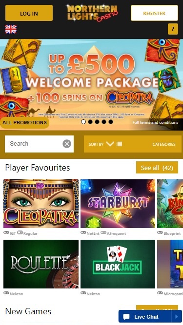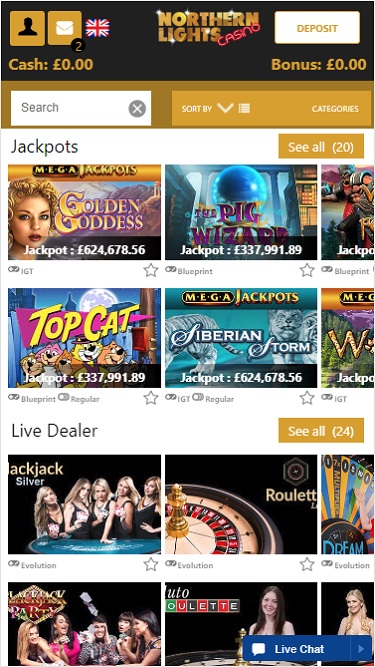 Northern Lights Casino 由 Microgaming, Net Entertainment, Big Time Gaming, ELK Studios, Evolution Gaming, EYECON, lightningboxgames, Yggdrasil, Realistic Games, Pragmatic Play, Red Tiger Gaming, IGT, Games Global, Blueprint Gaming, Merkur Gaming, Nektan, NextGen, NYX Interactive, Konami, SG Interactive, CORE Gaming, Iron Dog Studio, Foxium, Betdigital and Rocksalt Interactive提供支持,其游戏通过基于网页的即时游戏平台提供,可直接通过您的网络浏览器加载。这一点至关重要,因为该赌场主要支持移动端游戏。当然,该网站也提供传统的桌面平台。