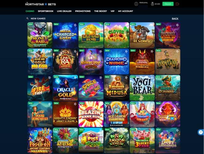 NorthStar Bets Casino 提供针对所有可用设备(移动设备和台式机)优化的游戏,这些游戏分为以下几个部分:真人荷官部分的真人二十一点、真人轮盘赌、真人百家乐和游戏节目,以及赌场类别的高级老虎机、老虎机、累积奖金、桌面游戏和所有游戏。