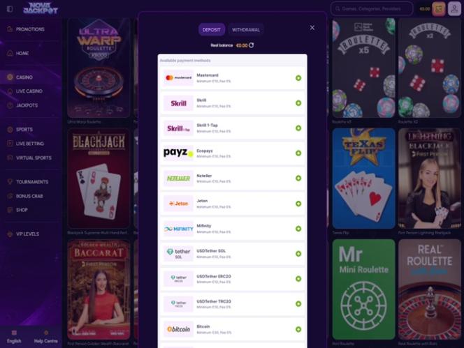 Novajackpot 是一个支持加密货币的博彩品牌,提供海量游戏、丰富的促销板块和诱人的会员计划。此外,该赌场的出纳员还支持多种银行业务选项。