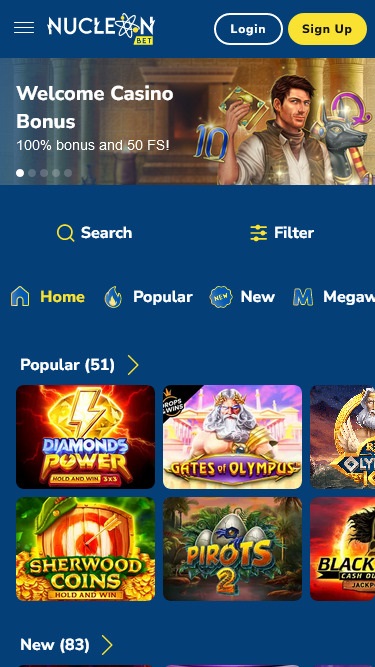 Nucleonbet 由多位 iGaming 行业先锋提供支持,而且除了在线赌场游戏之外,该博彩品牌还致力于提供一流的体育博彩服务,这一点毋庸置疑。玩家可以在这里找到许多精彩的赛事,并在热门比赛中试试自己的运气,但我们一如既往地专注于赌场游戏。