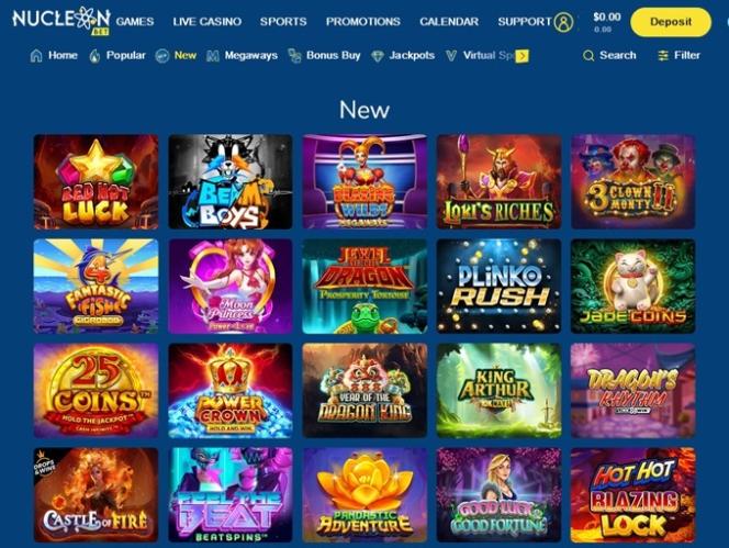 Nucleonbet 提供多种类别的老虎机游戏。例如,玩家可以尝试 Jackpots 和 Megaways,例如:Fruit Shop Megaways、Apollo Pays、Divine Fortune Megaways、The Dog House Megaways、Elemental Gems Megaways、Aztec Magic Megaways、Poseidon Ancient Fortunes Megaways、Buffalo King Megaways、Legend of Cleopatra Megaways、Break Da Bank Again Megaways、Choco Reels、Gold Collector: Diamond Edition、Jewel Race Sakura、Barn Festival™、Royal League Spin City Lux、Dwarfs Fortune™ Easter、Amazing Link™ Fates、Lion Gems: Hold & Win、Lost Mystery Chests 等等。