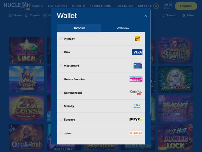 Banking银⾏业务选项 的 Nucleonbet Casino