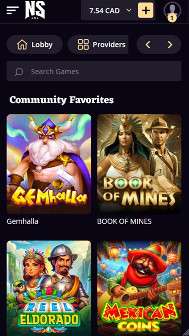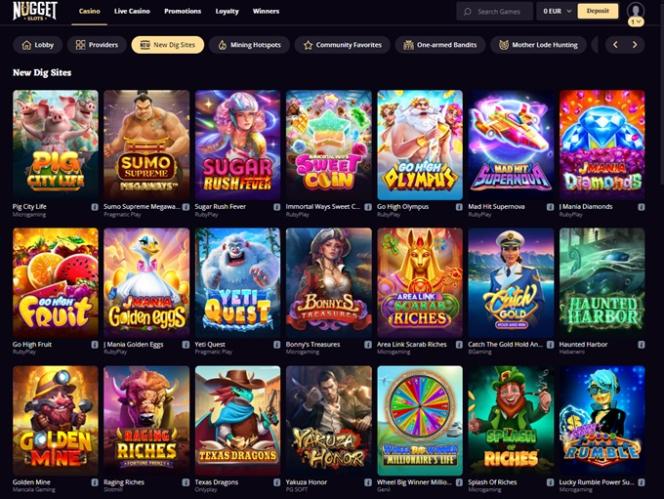 该网站平台顶部设有水平菜单,方便用户浏览所有游戏类别、促销活动和会员计划。从这里,您可以快速便捷地导航到 NuggetSlots 环境中的几乎任何部分。