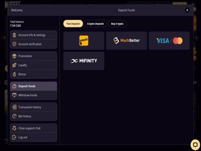 Banking银⾏业务选项 的 NuggetSlots Casino