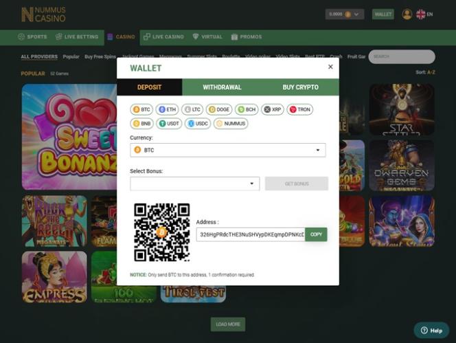 Nummus Casino 的出纳员支持加密货币,为玩家提供多种流行的数字货币进行交易。玩家可以选择比特币、比特币现金、狗狗币、莱特币、以太坊等。对于喜欢传统银行业务的玩家,赌场还支持法定货币的存取款,包括阿根廷比索、澳元、巴西雷亚尔、日元、欧元、美元、南非兰特……
