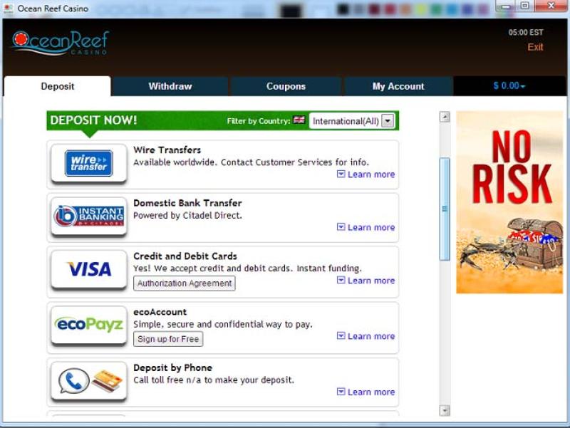 Ocean Reef 赌场由 Real Time Gaming提供支持,这使得它拥有与同一开发商旗下众多其他在线赌场相同的游戏库。该赌场既可以通过下载软件访问,也可以通过网页浏览器即时畅玩。Baccarat