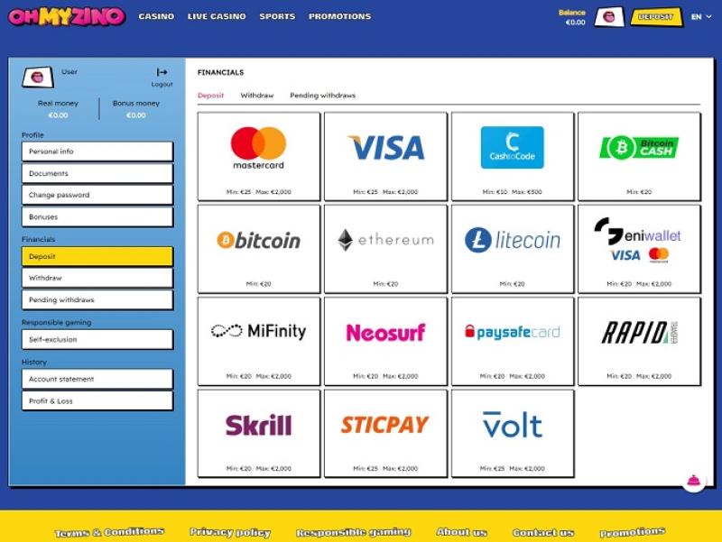 - 如果违反赌场的条款和条件,OhMyZino 赌场可能会限制玩家访问促销优惠或没收可用资金、禁止用户并关闭任何涉嫌欺诈或滥用条款和条件的账户。