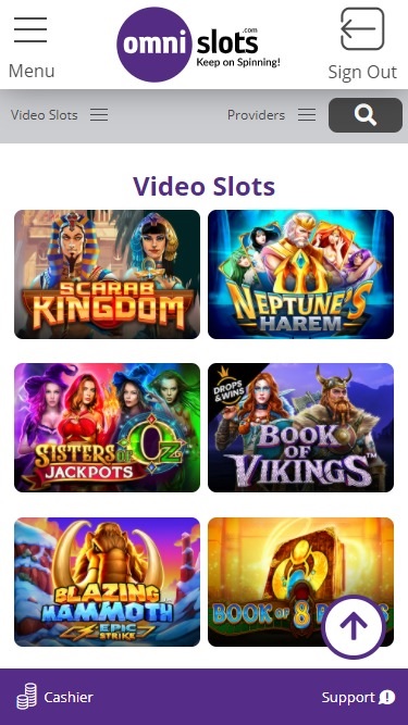 Omni Slots 赌场由 Net Entertainment, BetSoft, 1x2gaming, Amatic Industries, iSoftBet, Oryx, Play'n GO, playson, Thunderkick, Wazdan, Booming Games, Stakelogic, Pragmatic Play, Spinomenal, Red Rake Gaming, Fugaso, Kalamba, Revolver Gaming, Spin Games, BGAMING, Fazi, Gluck Games, HungryBear Gaming, Blue Guru Games, Reevo, GamesOS, Leander Games, Gamomat, BF Games, Bally Wulff, Wild Streak Gaming, Golden Hero, RubyPlay, Gamevy, Japan Technicals Games, BB Games, Black Pudding Games, RAW iGaming, Spribe, Gaming Corps and Indigo Magic提供支持,拥有丰富的游戏库,可通过赌场的网络平台访问。该赌场还设有移动投注网站,方便在智能手机和平板电脑上进行游戏。