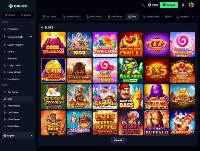 Onluck 在其老虎机部分包含数千款可供选择的游戏,这些游戏具有吸引人的主题、令人兴奋的机制和所有可能的卷轴设置,并且还会定期添加新游戏。