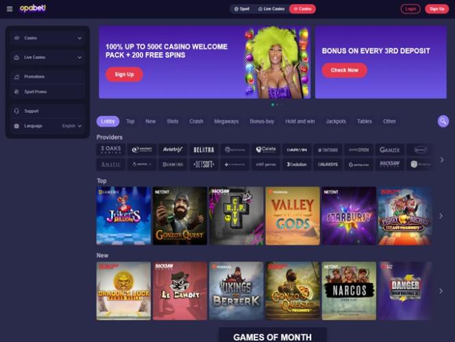 Opabet Casino 拥有海量游戏库和丰富的奖金及促销活动,旨在为玩家提供难忘的赌博和体育博彩体验。在线老虎机、真人荷官游戏、速成游戏和桌面游戏应有尽有,数千种精彩选择应有尽有。最重要的是,该品牌接受比特币等加密货币进行存款和取款。