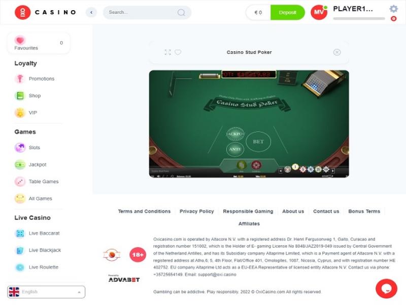 OXI Casino 是一家在线赌场,由 Altacore NV 拥有和运营,该公司根据库拉索法律注册成立,持有 Antillephone NV 颁发的许可证。