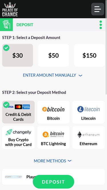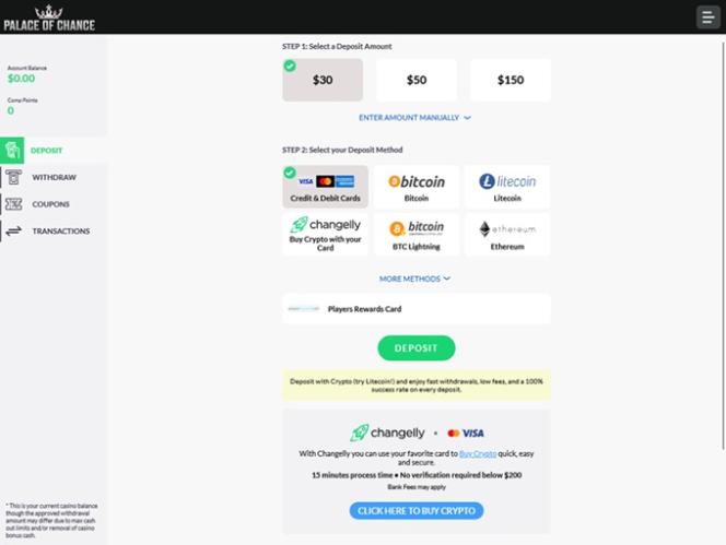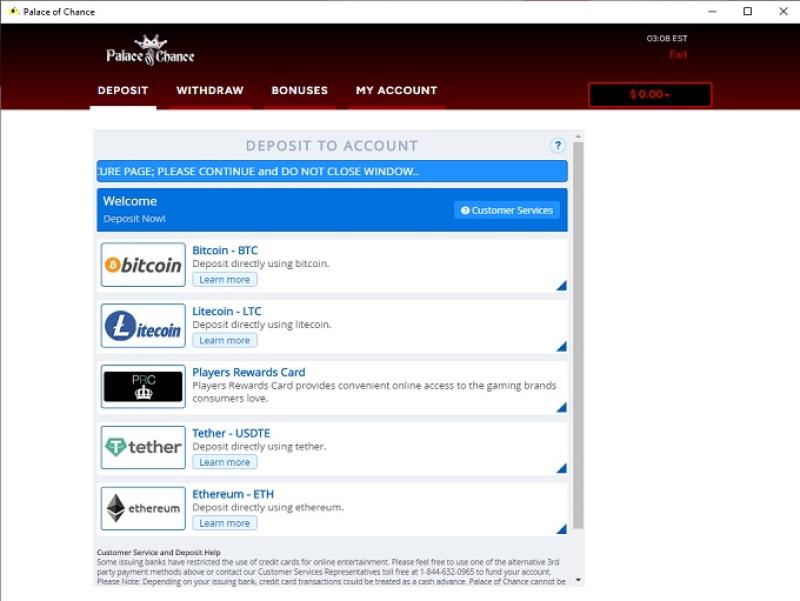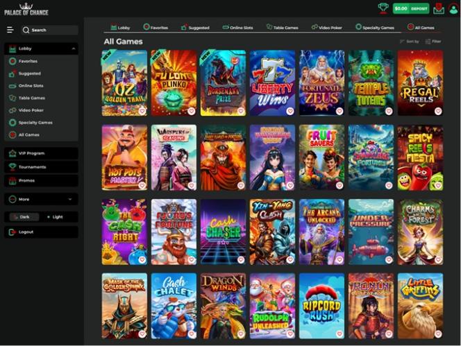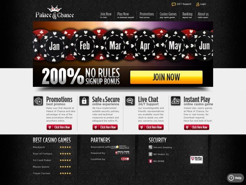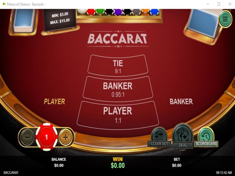 Palace of Chance Casino 由 Real Time Gaming and Spinlogic Gaming提供支持,它拥有一个基于网络的平台以及一个可供玩家用来访问赌场游戏的可下载软件。Baccarat