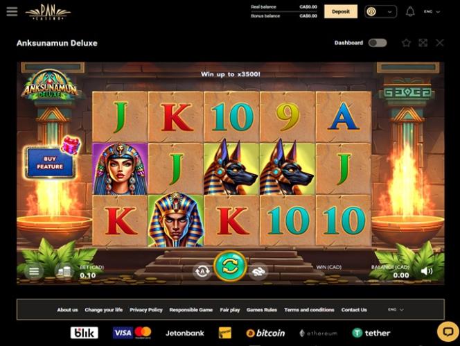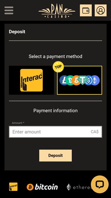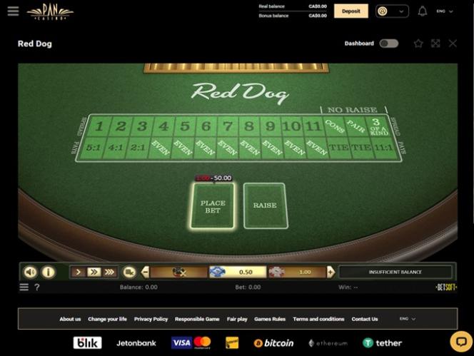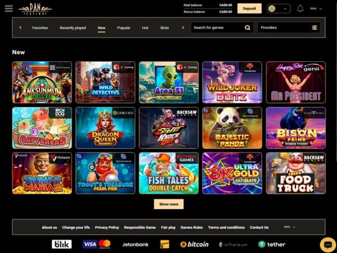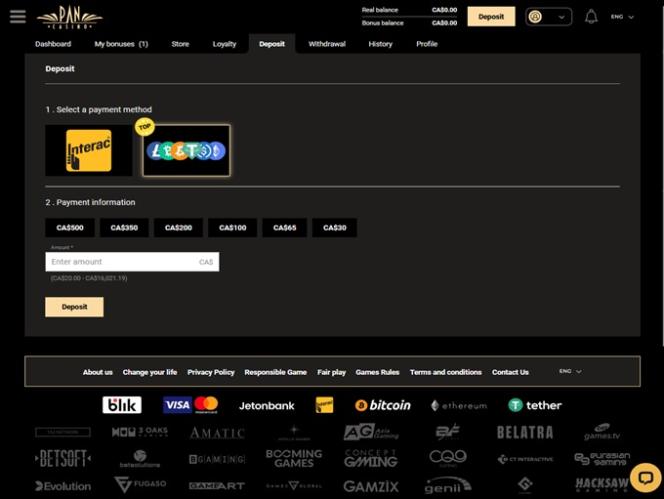 Pan Casino 支持众多法定货币和数字货币,包括Cardano、比特币现金、比特币、加拿大元、以太坊、莱特币、波兰兹罗提、Solana、Toncoin、TRON、USD Coin、Tether、XRP……