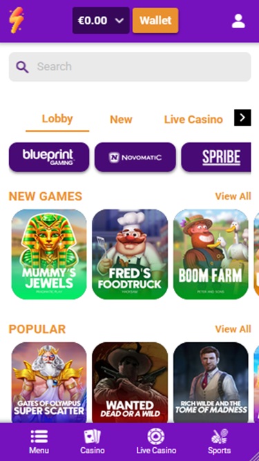 这是一家非常可爱的赌场,其画面设计也别具一格,吉祥物是一只笑容灿烂的树懒,身穿闪亮的紫色夹克,与网站配色相得益彰。这家赌场风格真实,设计精美,我们相信它会赢得众多在线赌场玩家的青睐。