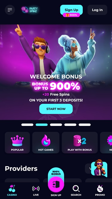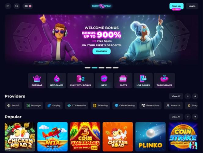 PartySpinz是一家现代化的在线赌场,致力于为玩家提供媲美拉斯维加斯的博彩体验,让玩家足不出户即可享受丰富的游戏选择,包括真钱老虎机、真人荷官游戏、桌面游戏和碰碰车游戏。此外,PartySpinz还非常注重提供丰厚的奖金、促销活动、精彩赛事和网络锦标赛。