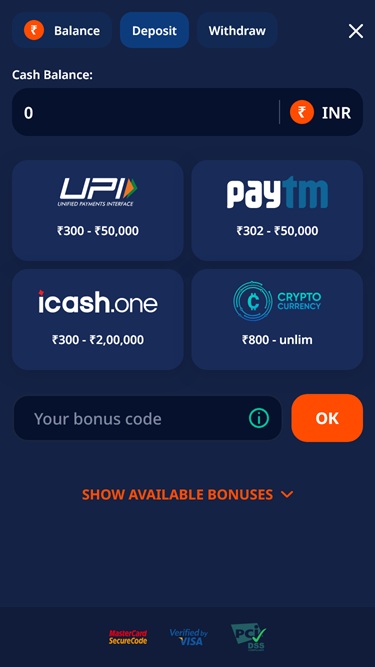 关于支付方式,您可以使用多种支付方式管理您的赌场资金,包括 I MPS和PayTM ,以及各种加密货币,例如比特币、比特币现金、狗狗币、以太坊、莱特币、索拉纳、Toncoin、 Tron 、 USD Coin 、 Tether和瑞波币。