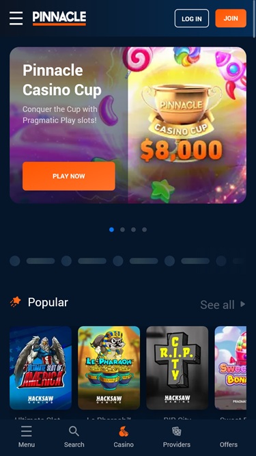 Pinnacle Sports Casino 是一个在线博彩网站,隶属于 Pinnacle 体育博彩网站。Pinnacle Sports Casino 于 1998 年开业,由 Ragnarok Corporation NV 拥有和运营,以提供稳定但略显过时的游戏体验而闻名。赌场资讯