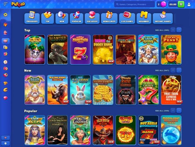 正如我们已经提到的,您可以在 Pistolo 赌场选择多种不同的游戏,包括轮盘赌、百家乐和二十一点。