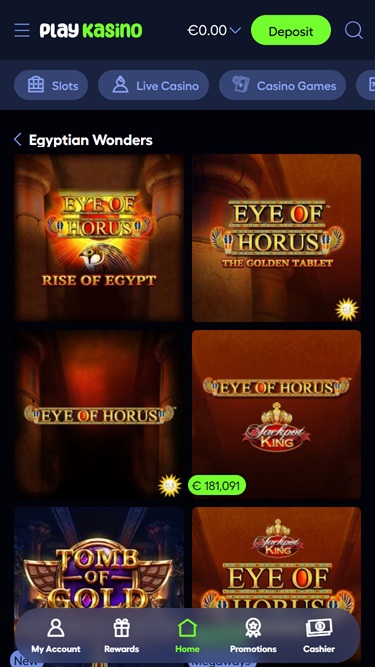 当您加载赌场网站时,您会看到深色主题和现代界面,让您可以轻松浏览赌场内的各个页面。
