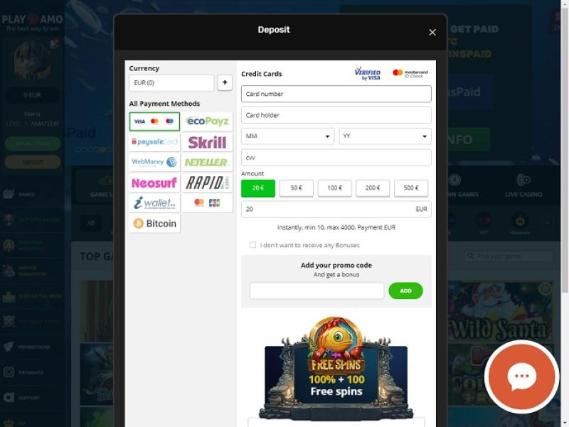 Playamo Casino 提供视频老虎机和经典老虎机,并提供 Net Ent、BetSoft 等多家游戏开发商的游戏。此外,赌场还提供少量累积奖金,只需旋转一次转轴即可赢取丰厚现金奖励。